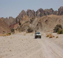 Dimanche 15 Octobre : grande plaine sablonneuse, puis piste dans des vallées montagneuses, boucle dans des collines rouges, Palmwag, 230 Kms, lodge 110€/p en ½ pension, camping 17€/p